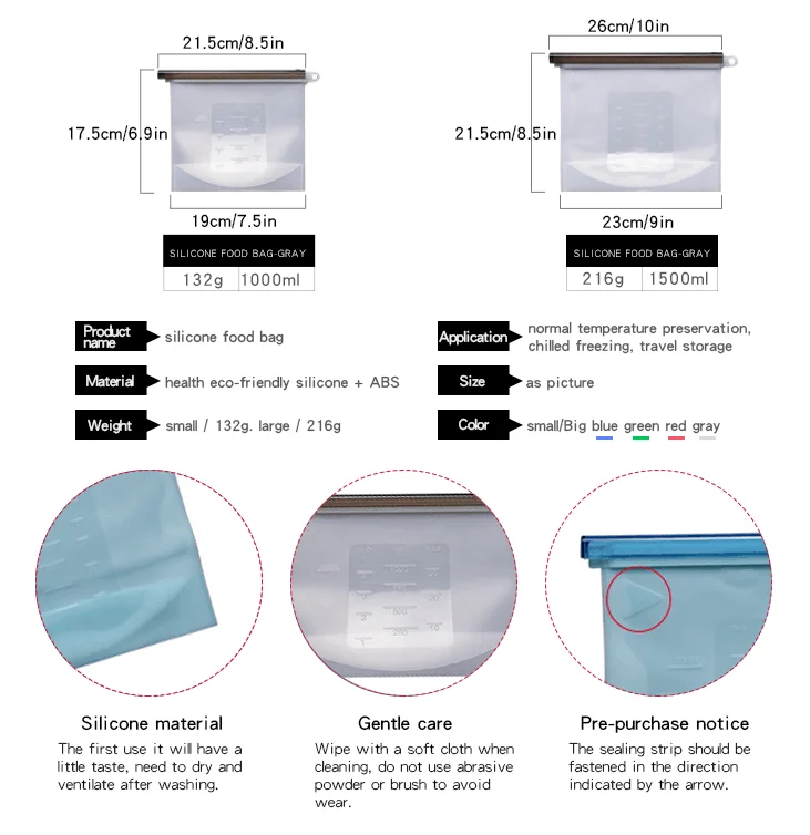 500 ml silicone food storage bag 1000 ml silicone food storage bag