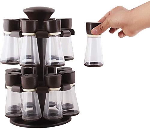 TITLE : Plastic 16 in 1 Spice Rack/Box Set Multipurpose Plastic Deluxe Rotating Spice Rack 16 in 1 16 in 1 Spice Rack Plastic Spice Rack Spice Storage Container revolving Rack Container revolving Rack Spice SetMultipurpose Plastic Big 360 Degree Revolving Spice Rack 16 in 1 / Masala Rack Set/Condiment Set/Spice Container revolving Spice Rack Organize Storage Container | Masala Dani Box Set For indian Countertop kitchen (16 Piece Set)