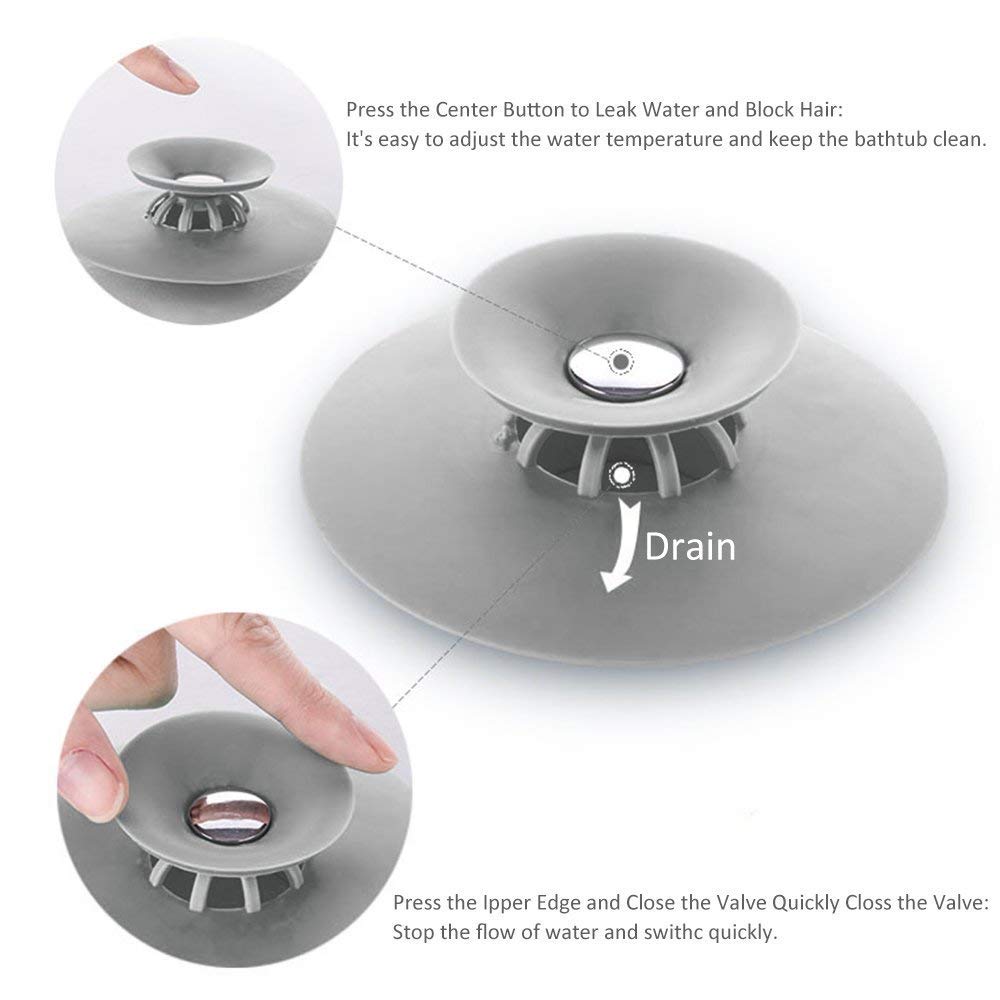 The drain stopper bath tub easily block tiny debris, can be used in kitchen sink to stop food bits going down plug hole, or used in bath/shower to trap hairs, make your drain keep smooth and clean.If your stopper is not seal and leak, possibly because the drain cover has been squeezed and deformed during long-distance transportation. But don't worry, it's not damaged. You can try to pour some hot water around it, then it will restore its original shape.