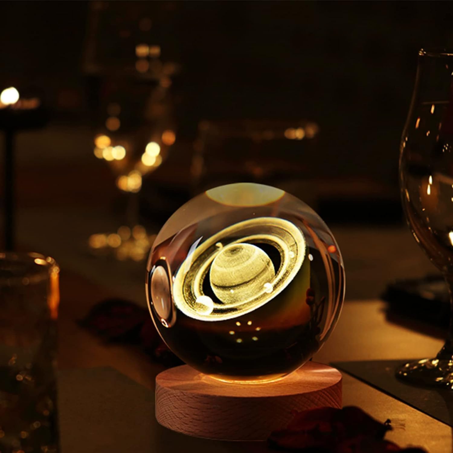 Title : 3D Galaxy Crystal Ball Night Lamp, Solar System Crystal Ball Night Light, USB Table Colorful LED Wooden Crystal Ball for Home Decoration Birthday Gift for Teens Boys and Girls (Random Light)(8 CM)