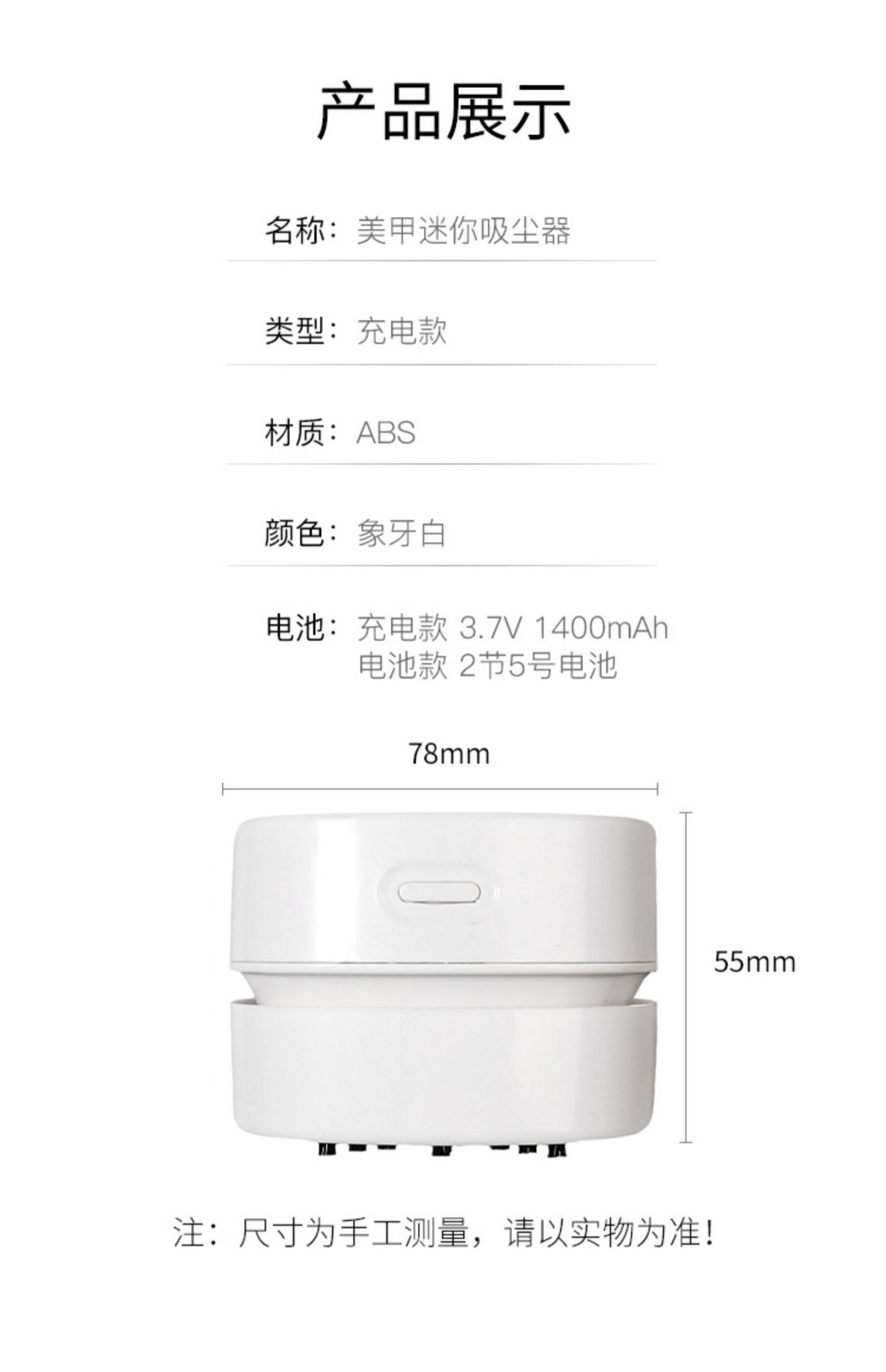 Scope of Application: The mini vacuum cleaner has a large suction power, which can easily absorb dust, paper scraps, eraser scraps, hair, melon seed peels, etc.