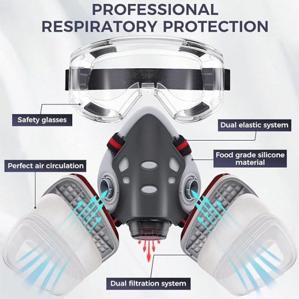 PROFESSIONAL PROTECTION: This advanced gas mask provides essential respiratory protection in environments filled with hazardous airborne particles, toxic gases, vapors, and dangerous contaminants. Featuring an innovative filtration system, it effectively blocks a wide range of toxic substances, ensuring that your respiratory health is safeguarded in the most challenging conditions.