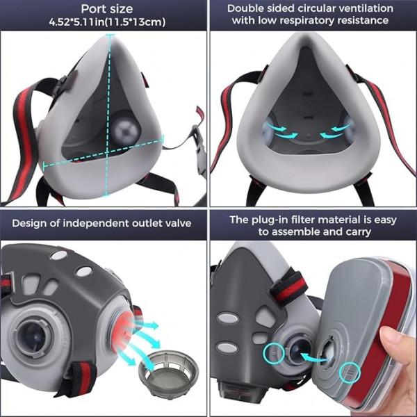 HIGH-EFFICIENCY FILTRATION: Equipped with high-efficiency filter cartridges, this gas mask delivers top-notch protection against a diverse array of harmful particulates, gases, and vapors. The advanced filtration system guarantees that the air you breathe is clean and safe. Ideal for different professional settings, including industrial environments, rely on superior protection with our top-tier equipment.