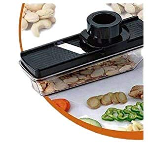 Extremely sleek and compact design allows easy storage, occupying very small space in a drawer or refrigerator's making it a possession you will be proud of In the Box Famous Vegetable/Dry Fruit Slicer High-Quality Plastic and stainless steel Handy to use.