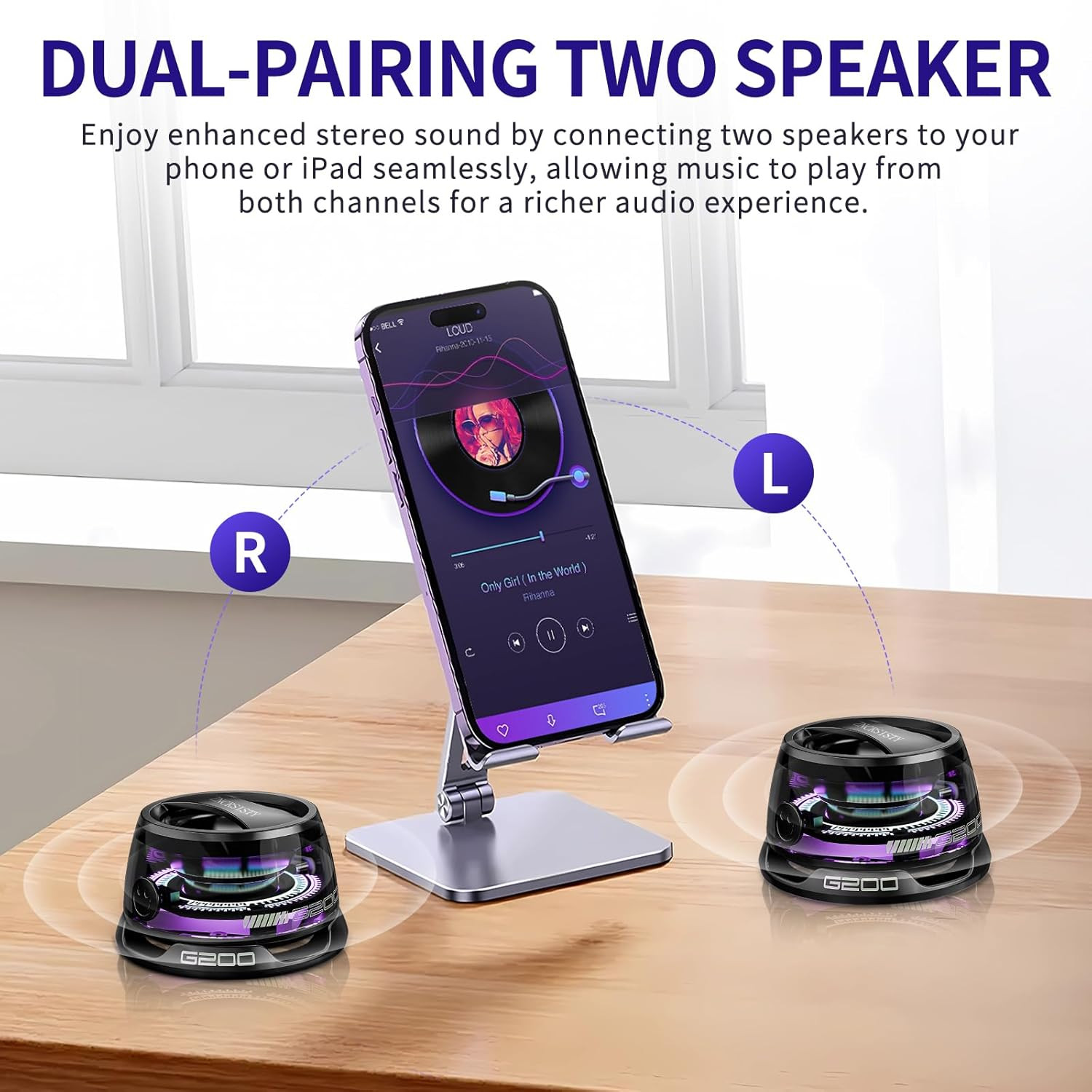 Magnetic mini speaker: The G200 wireless speaker is a compact Bluetooth speaker with a strong magnetic base, making it easy to attach to your phone as a stand or to any nearby metal surface for hands-free convenience.
