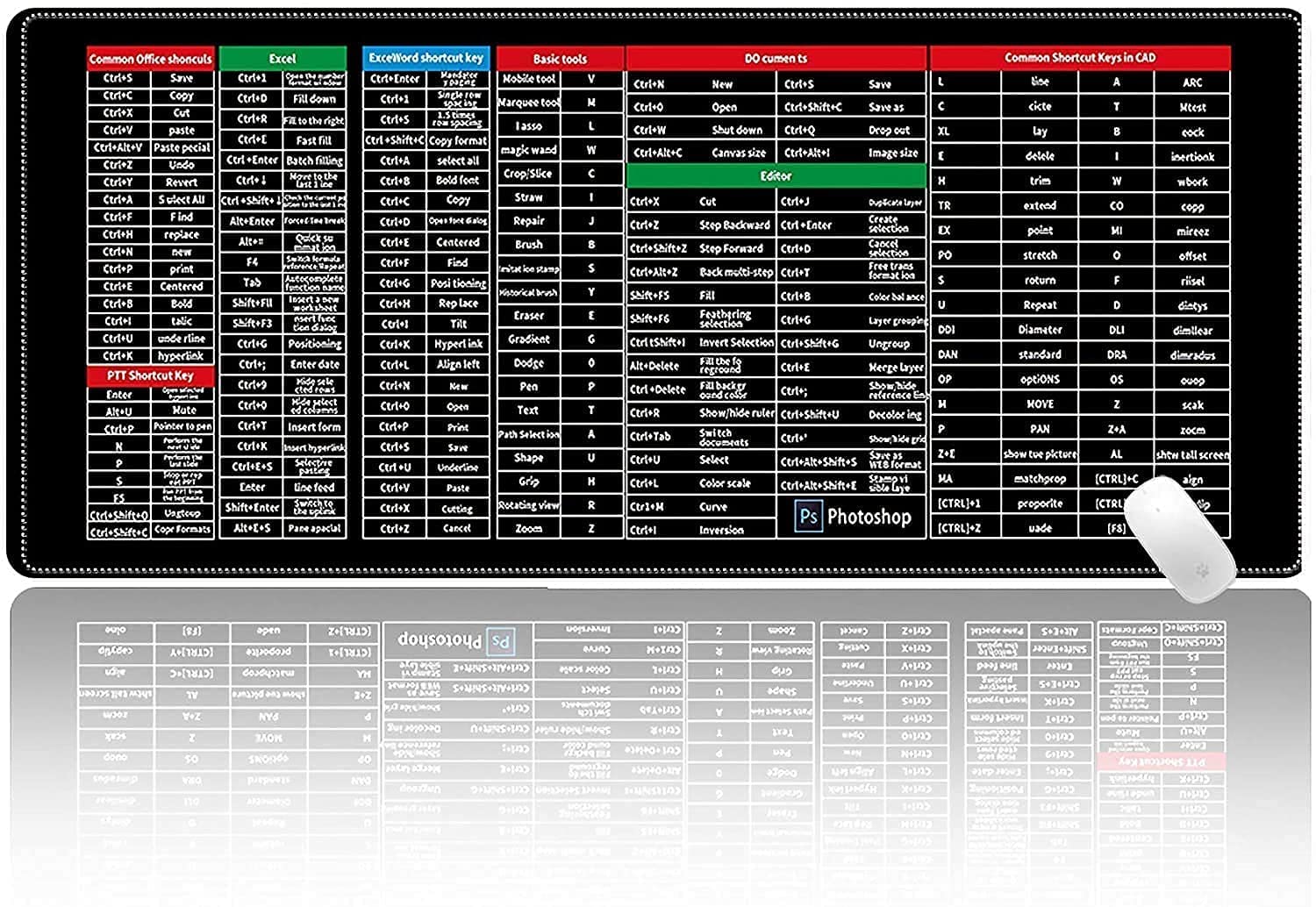 ✌✌Computer Shortcuts Guidance: 145 shortcut keys for Excel, Word, PPT, PS, CAD are frequently-used, basic, helpful for the people who as office clerks, students, and beginner since the design of this desk pad can help these people more efficient when they sit in front of computer all the time.