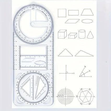 This ruler is equipped with various templates that allow students to create different geometric shapes, ideal for visualizing and understanding math concepts.