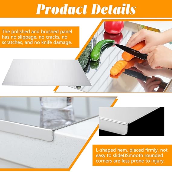 Stainless Steel Pastry Board with Counter Lip Large Chopping Cutting Board Non Stick Kneading Board Metal Baking Mat for Vegetables Meat Fruit