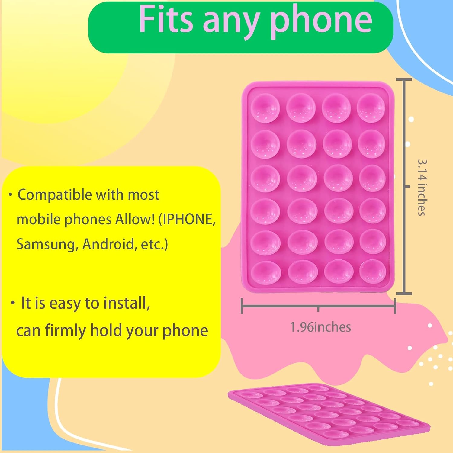 Title : Silicone Suction Phone Case Mount, Adhesive Phone Accessory Compatible with iPhone and Android, Hands-Free Fidget Toy, Mirror/Shower/Phone Holder for Tiktok Videos and Selfies