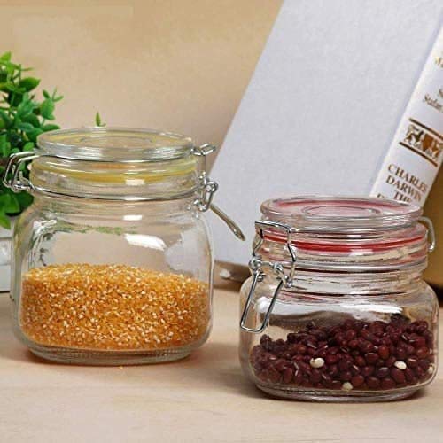 TITLE : wing Cap Glass jar Container 500ml set of 1 Airtight With Silicone Clamp Swing Cap Lid For Kitchen Food Storage 500ml Jar For Kitchen Spices Set Of (1) 500ml Glass Jar Container