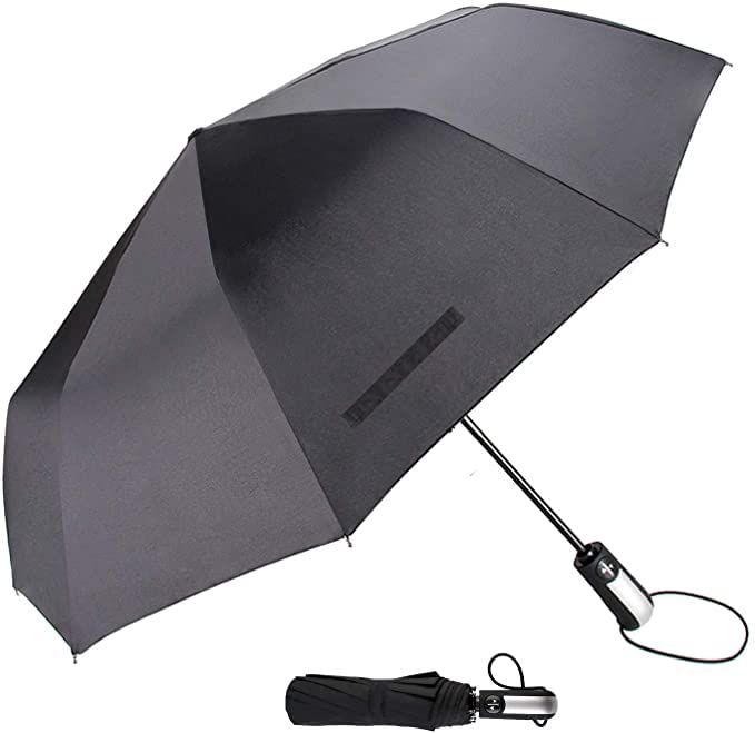 foldable umbrellas for men, women are designed with you in mind and built to ensure the ultimate protection and comfort in any weather condition. Measuring just 13.5 inches long when folded and lightweight for easy storage in purses, briefcases, backpacks, and more. Zemic Travel Umbrella is fortified with 10 resin-reinforced fiberglass ribs that flex slightly to withstand powerful gusts without turning inside out and defends against the elements like no other umbrella. A useful addition to any travel bag, backpack, or briefcase, this compact automatic travel umbrella helps keep you dry when the skies turn dark and the pouring rain begins. From warm Spring showers to fierce Fall storms and unruly wind tunnels, the Zemic umbrella makes for a great take-along companion when you need to get from here to there without getting drenched. Built to last through many rainy seasons, year after year, the compact automatic travel umbrella features durable steel construction with a canopy made of reliable, waterproof pongee fabric. Sturdy, yet lightweight, the umbrella helps get you where you're going without having to worry about the weather. Thoughtfully designed, the umbrella's canopy automatically opens and closes with the simple touch of a button. Push the button to open; push the button to close. After the canopy collapses, manually pull the upright support down into the locked position. With the umbrella back in its base, the auto-open mechanism is ready to be used again. The compact automatic travel umbrella includes a slip-on sleeve, which helps keep the umbrella neatly stored. The storage sleeve fits securely around the closed-position umbrella, and lifts off easily when it's time to take cover and venture outside. The umbrella comes equipped with a soft, secure-grip handle, which helps ensure a comfortable hold, whether casually window-shopping downtown or dashing from your car to the front door.