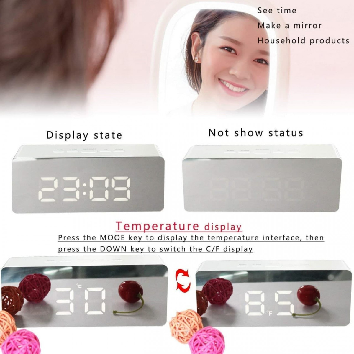 Multifunction Digital Clock : The LED alarm clock designed as mirror style. With large digital display, integrate time display, alarm, snooze, temperature display, night mode and mirror